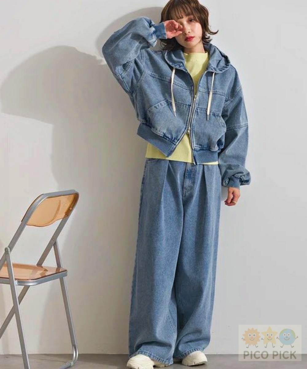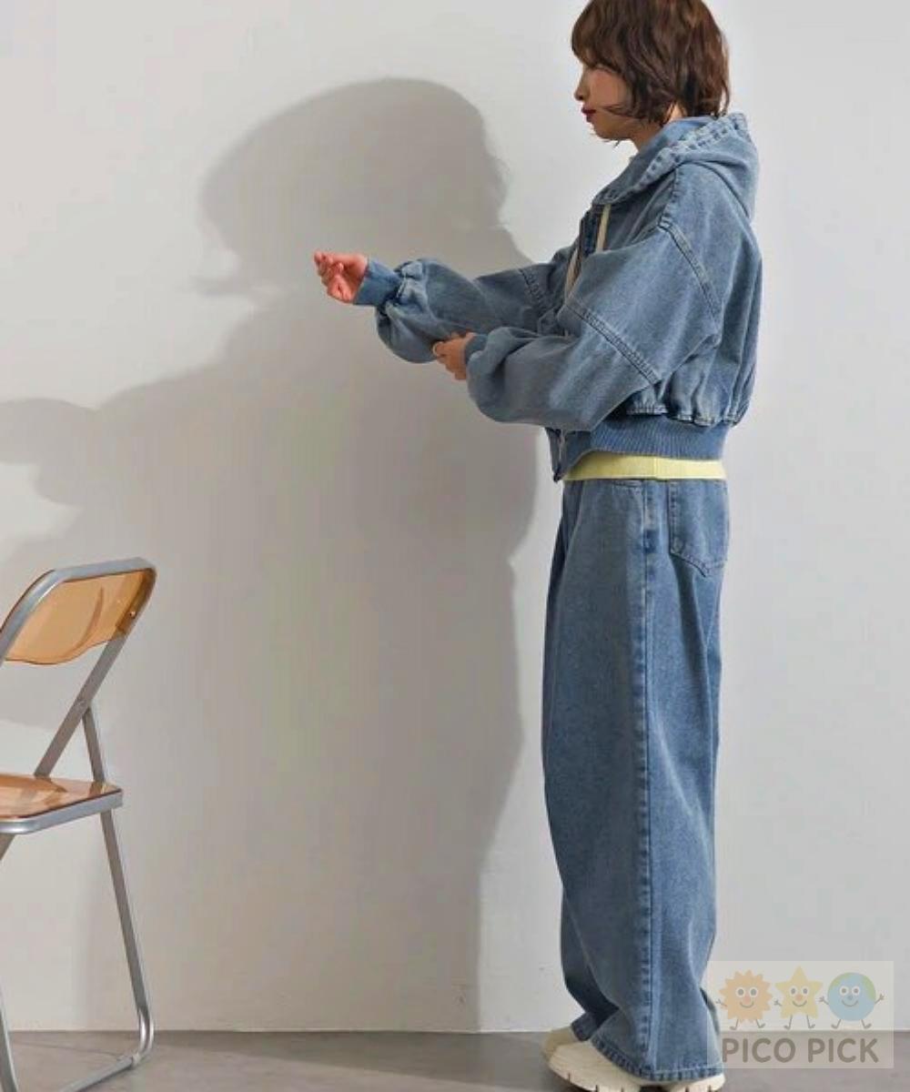 短版連帽外套+立體打摺牛仔褲